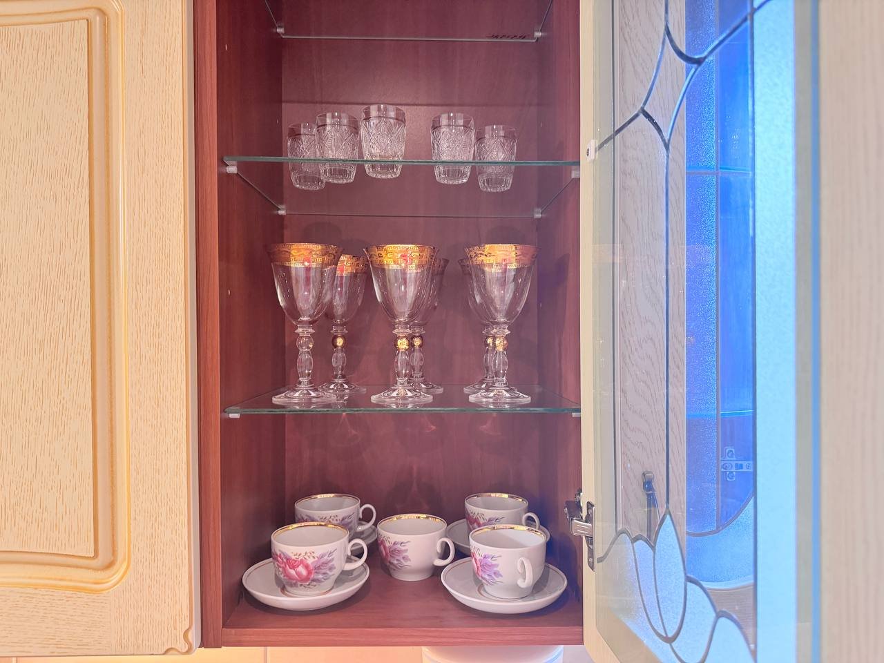 Кухня полностью оборудована техникой и посудой для приготовления пищи: