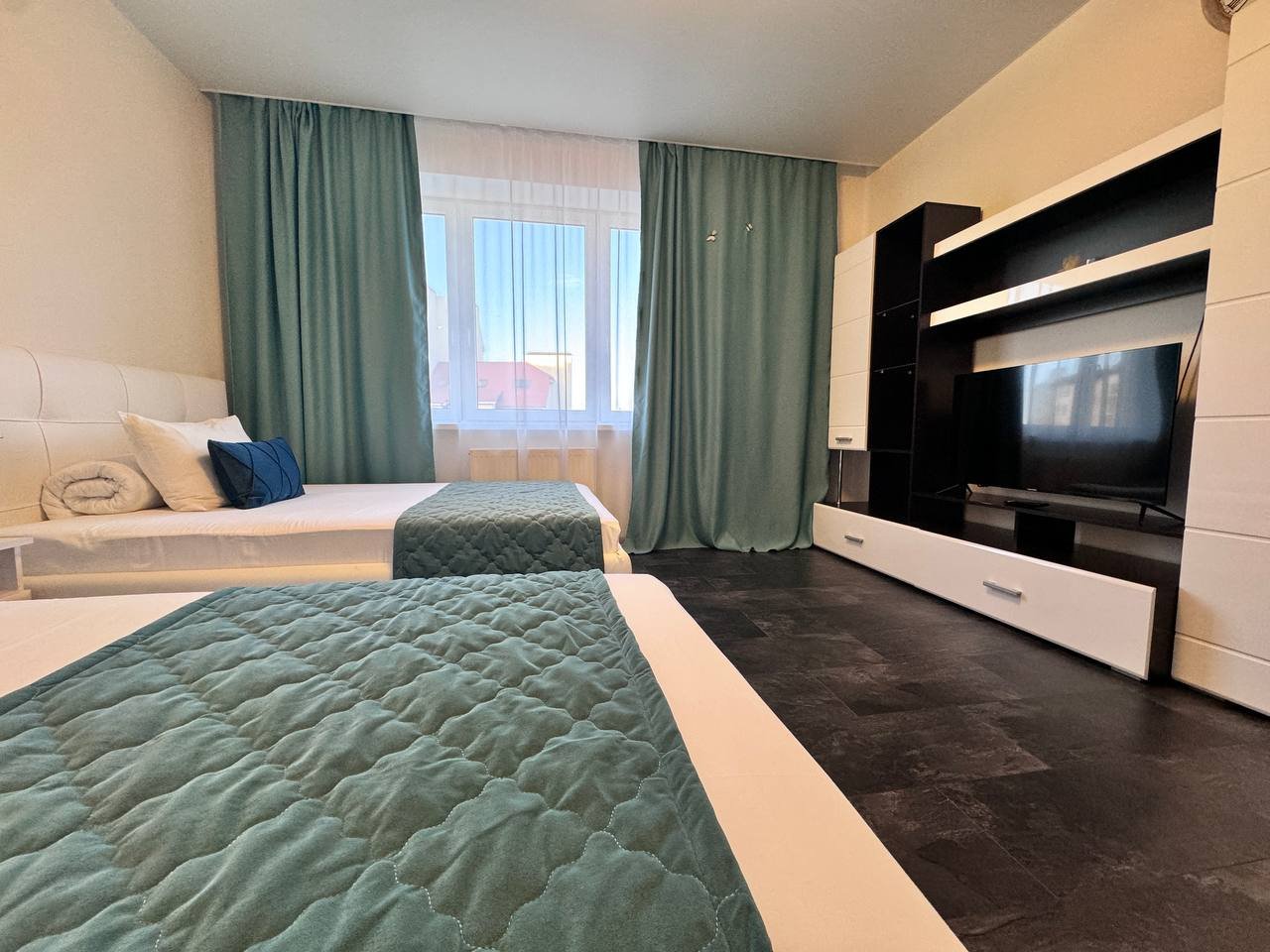 Двухкомнатные апартаменты в 7 минутах ходьбы от центра Зеленоградска с раздельными кроватями в спальне!